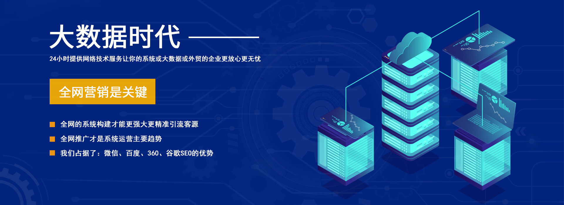 服務(wù)特色:24小時提供網(wǎng)絡(luò)技術(shù)支持,讓你的系統(tǒng)或大數(shù)據(jù)或外貿(mào)的企業(yè)更放心更無憂。