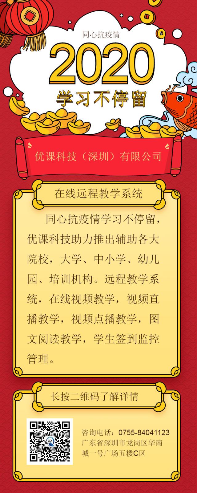 同心抗疫情學(xué)習(xí)不停留,優(yōu)課科技助力推出輔助各大院校,大學(xué)、中小學(xué)、幼兒園、培訓(xùn)機(jī)構(gòu)。遠(yuǎn)程教學(xué)系統(tǒng),在線視頻教學(xué),…